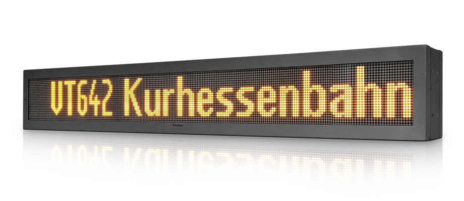These displays confirm stop requests on either the integrated or a separate LED-backlit panel, supporting proportional lettering up to 30 characters, pictograms, digits, and scrolling tickers for flexible passenger information. With a 38 mm character height and modular multi-line resolutions, they integrate seamlessly into any bus or tram. Standard interfaces like IBIS, RS485, and Ethernet enable intuitive control via on-board computers, and a variety of housing colors ensures harmonious installation.