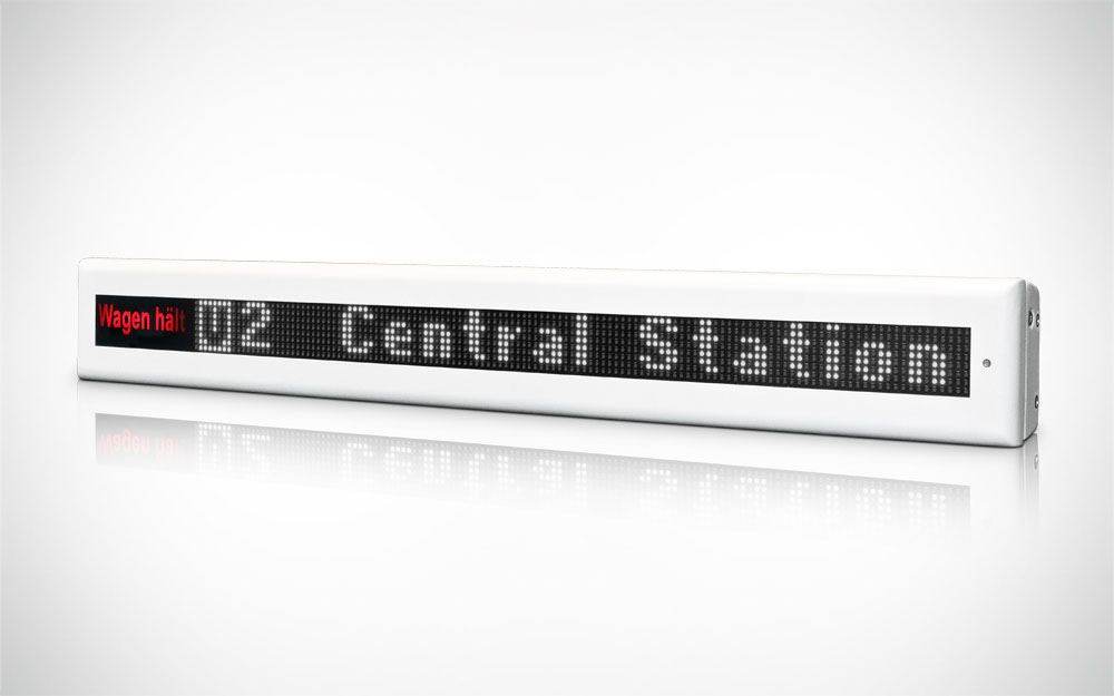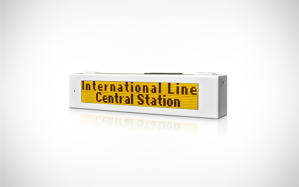These displays confirm stop requests on either the integrated or a separate LED-backlit panel, supporting proportional lettering up to 30 characters, pictograms, digits, and scrolling tickers for flexible passenger information. With a 38 mm character height and modular multi-line resolutions, they integrate seamlessly into any bus or tram. Standard interfaces like IBIS, RS485, and Ethernet enable intuitive control via on-board computers, and a variety of housing colors ensures harmonious installation.
