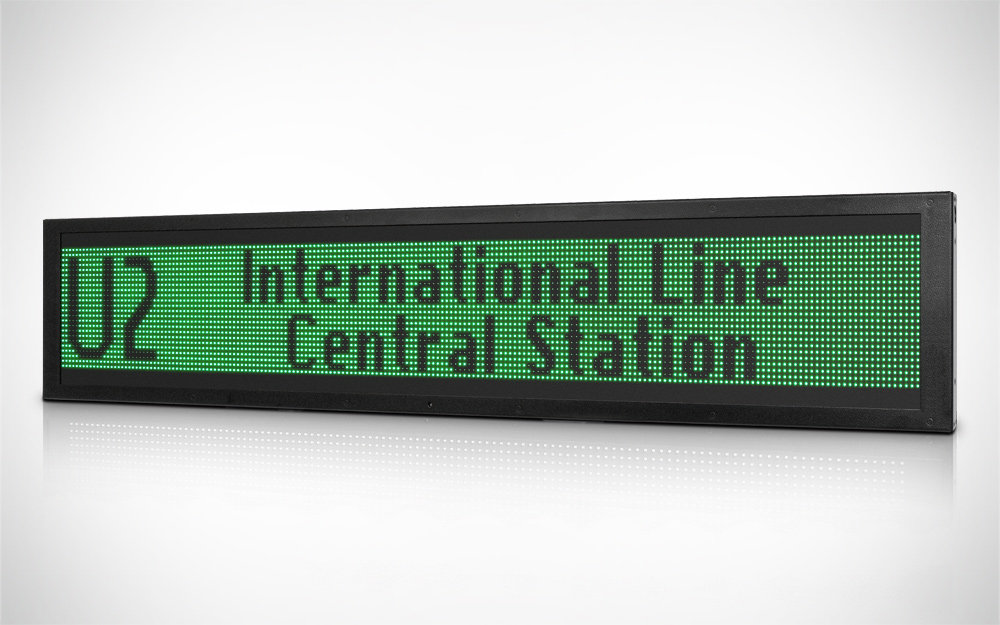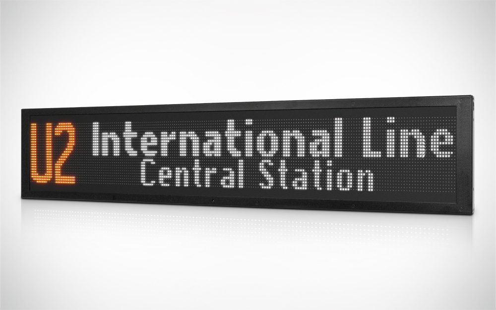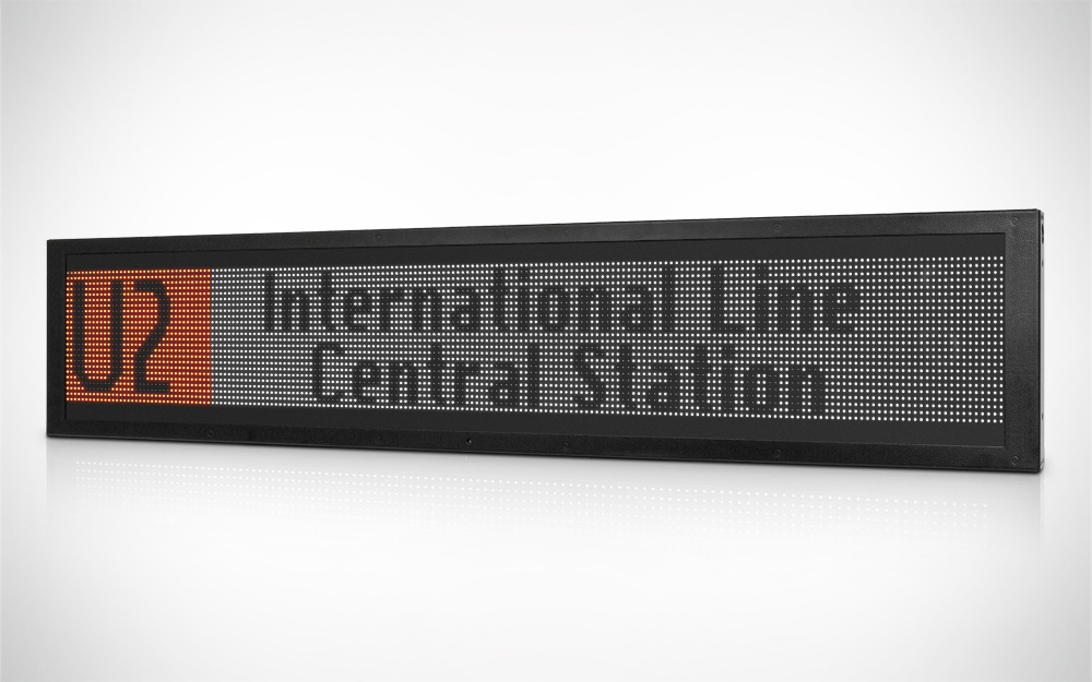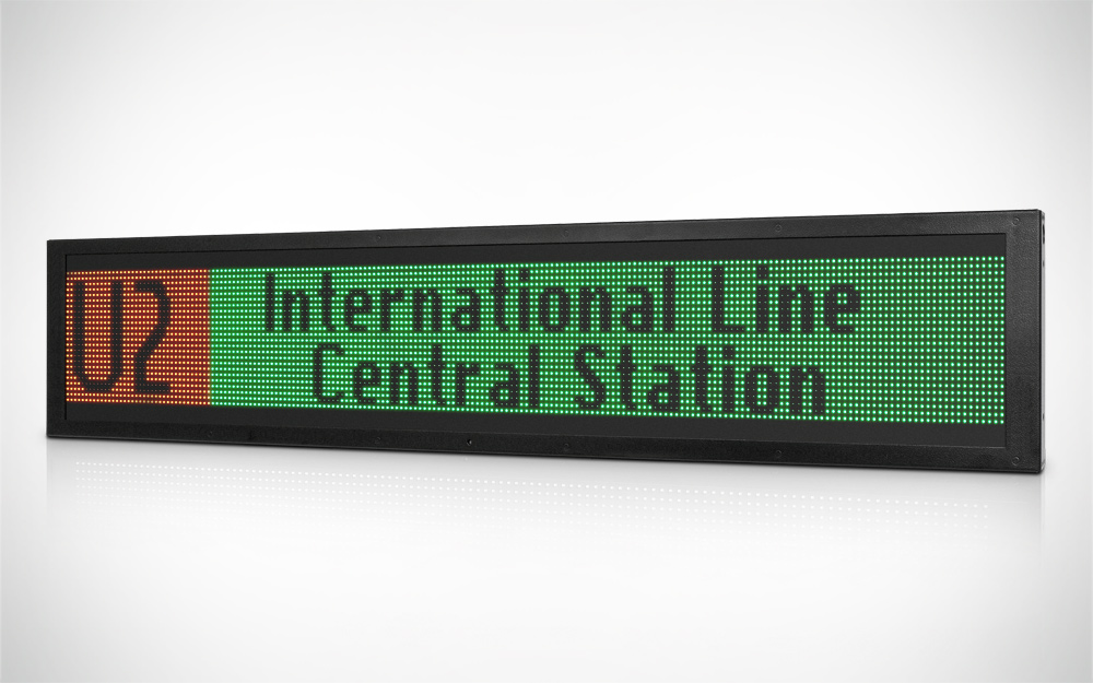 Available in amber, white, and green, these ECO LED outdoor displays also support a dual-colour Monochrome-Mix mode to separate icons from destination text. The slim 40 mm housings mount easily in any bus and are delivered just-in-time. Featuring innovative multiplex control and scroll/ticker capabilities, they optimize energy use while displaying dynamic messages. For crystal-clear pictograms, the VISE Editor can add high-contrast lines or third-colour accents in the RGB field.