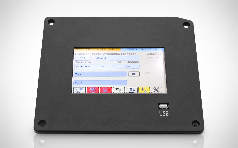 The BT937 is the central on-board computer for buses and trams, unifying control of LED exterior and interior displays, TFT monitors, announcement units, ticket printers, ticket validators, counting modules, security modules, and third-party systems from one interface. Its color touch display, with adjustable brightness and contrast, offers intuitive navigation and reduces driver workload. Acting as the vehicle’s data-bus hub, it monitors, supervises, and updates real-time information flows. The system supports seamless software and timetable updates via USB or network, and combines Renesas SH-4 processing, ample memory, and modular interfaces to meet the most demanding passenger information requirements and integration scenarios.