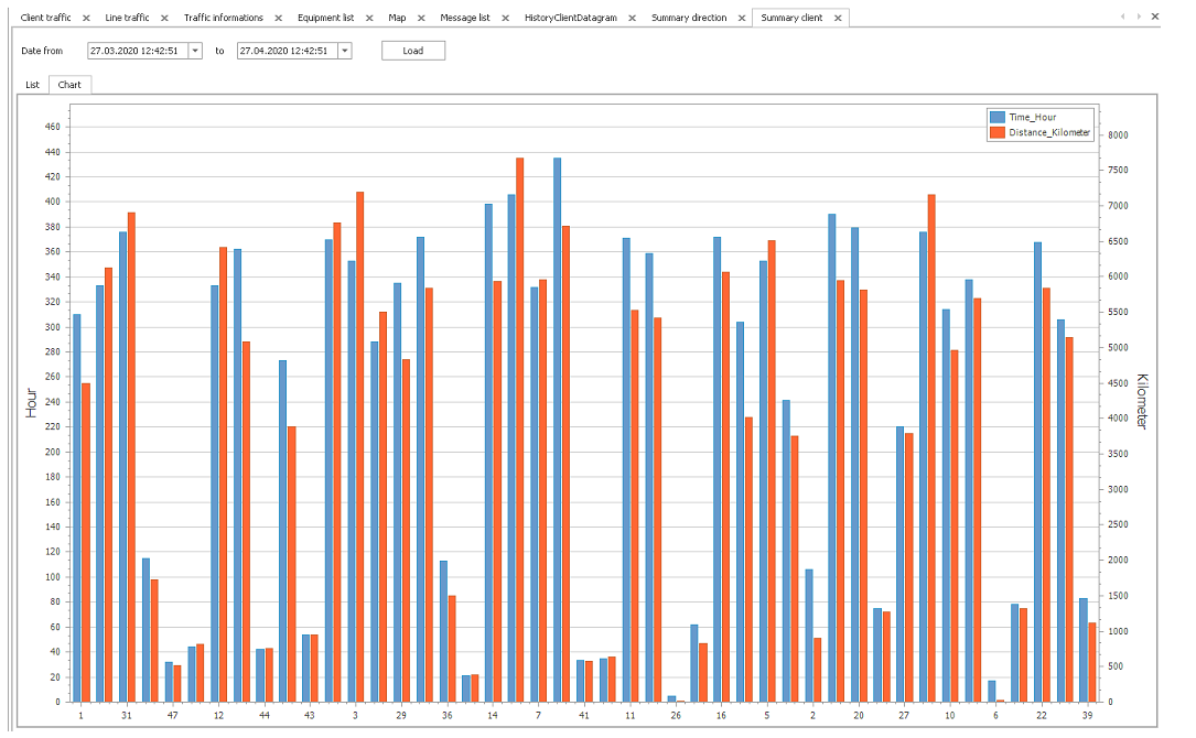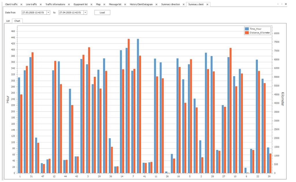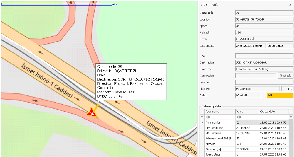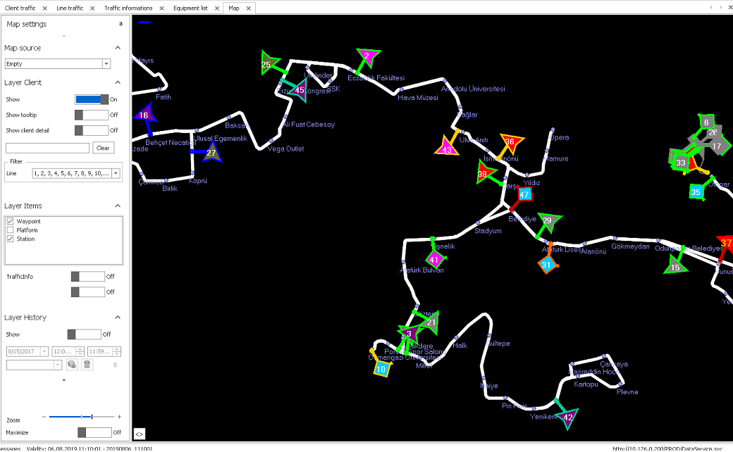 The central transport dispatch system provides comprehensive support for traffic management within the monitored area. It is suitable for urban, suburban, and regional transport. The system enables both real-time monitoring of traffic conditions and retrospective animation of selected date and time segments. It also includes vehicle and equipment diagnostics, along with a range of aggregated reports and statistics.