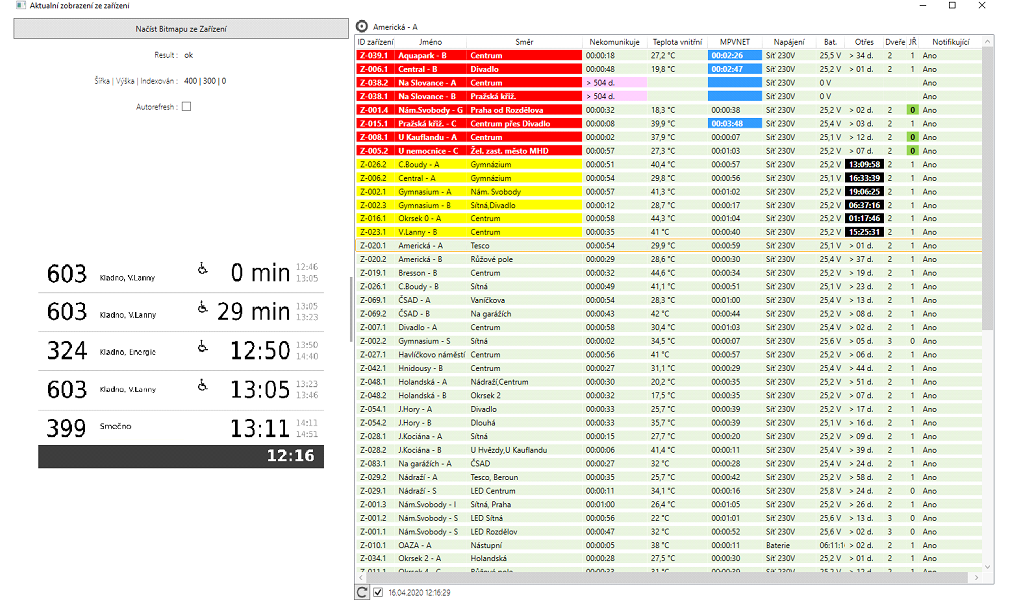System for displaying transport and other information on stationary panels with central monitoring and control. Stationary information panels are installed at bus stops as well as transport hubs, including terminals and railway stations. The system supports various panel types—LED, LCD, and e-Ink—based on customer requirements and preferences. The primary function of the stationary panels is to display the departure times of the next available connections, complemented by additional associated features.