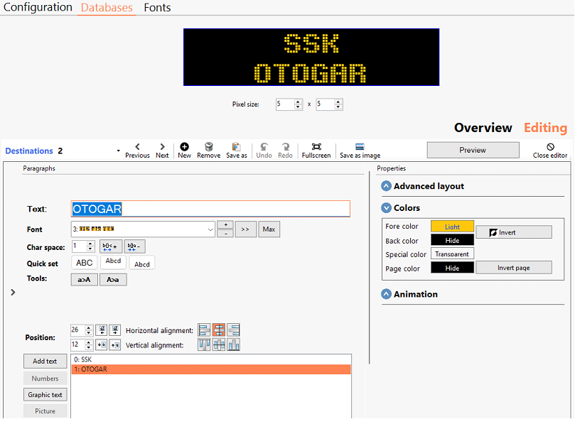 The system enables management of both visual information (such as routes, stops, trajectories, timetables, and special journeys) and audio information (including standard passenger announcements and exceptional messages). It also supports configuration management of onboard display units—covering layout settings, fonts, colors, and screen switching logic based on journey progression.