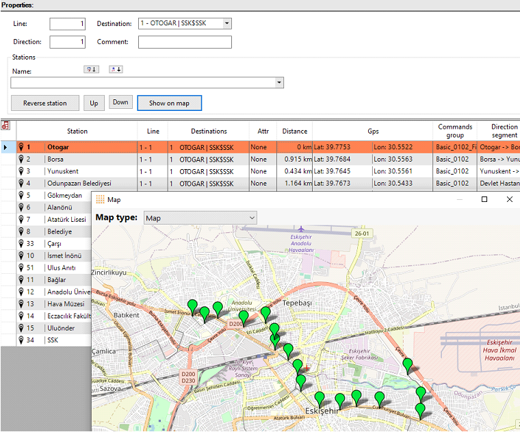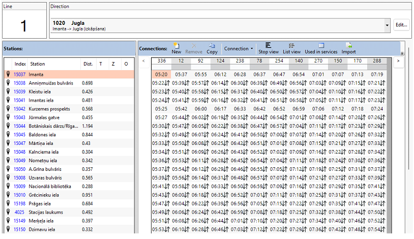 - Management of routes, destinations, stops, directions, timetables, and service schedules